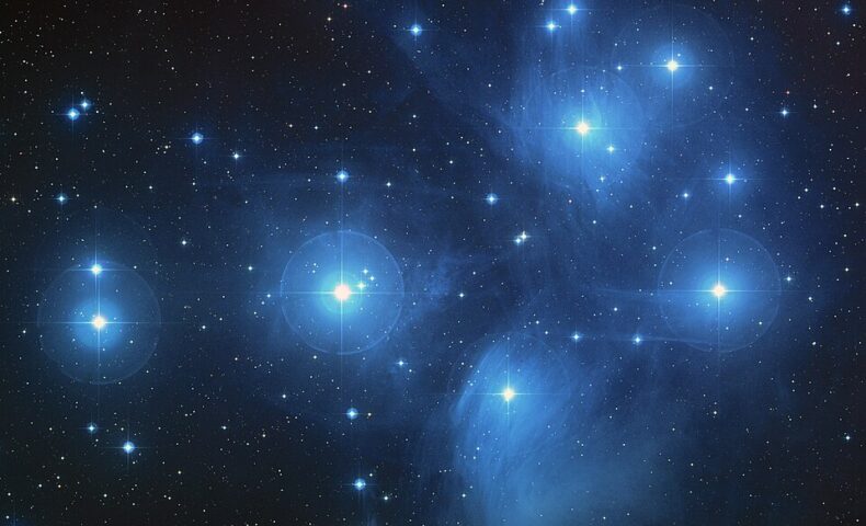 - プレアデス星団 (M45, すばる):秋から冬の宝石。肉眼でも星の集まりとして見え、双眼鏡なら無数の青白い星々を包む淡いガスを感じられます。