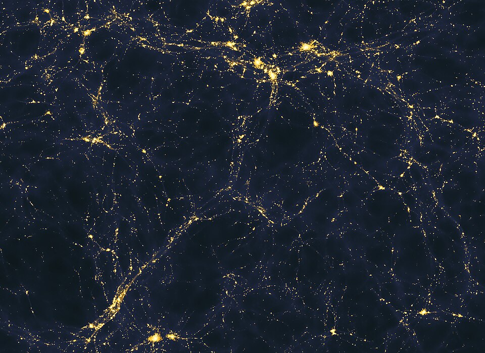 ダークマターは宇宙に網の目のように広がっており(宇宙の大規模構造)、その重力によって通常の物質(星や銀河)が集まったとされています。