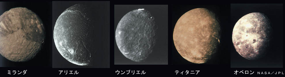 | オベロン | 1,522 | 583,520 km | 13.5 | 2番目に大きい。古く赤い表面。 |